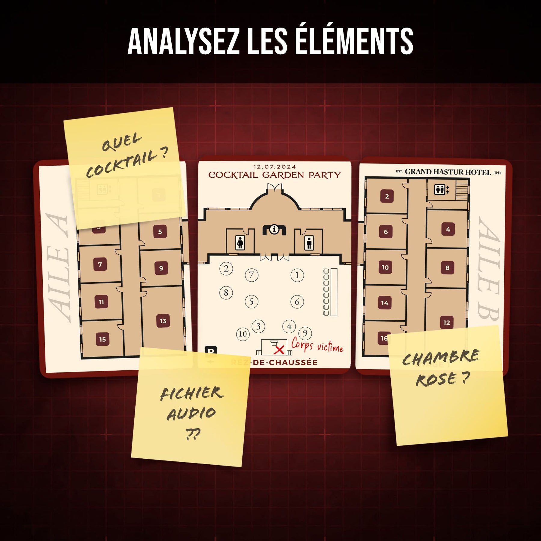 Formez une équipe de détectives et analysez l'ensemble des éléments à votre disposition dans la pochette ou sur le site dédié pour trouver le coupable.